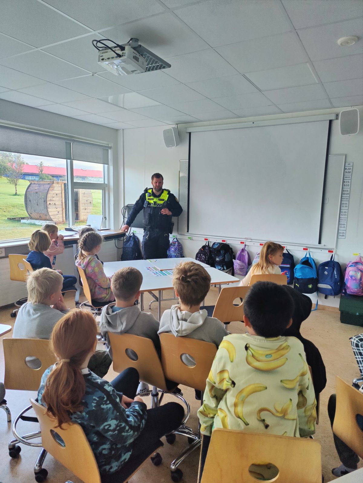 Samfélagslöggan er forvarnaverkefni Lögreglunnar á Vesturlandi og miðar að því að færa lögregluna nær samfélaginu og styrkja tengsl hennar við ungt fólk sérstaklega. Nemendur í 1. bekk á öllum deildum fengu fræðslu og spurðu mjög flottra spurninga. Einnig fengu nemendur endurskinsmerki gefins frá Björgvini samfélagslöggu. Við þökkum Samfélagslöggunni kærlega fyrir komuna.