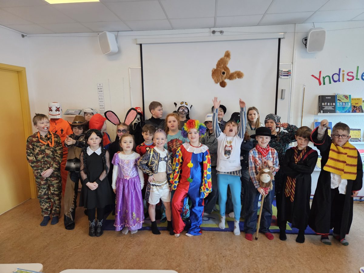 Öskudagur var haldinn hátíðlegur á Hvanneyri í dag. Ýmsar kynjaverur og karakterar komu í skólann í morgun. Eftir morgunmat fóru svo allir nemendur í heimsókn í Rannsókn, Hvannarhúsið og í Landbúnaðarháskólann og sungu fyrir starfsfólkið þar og fengu að launum nammi. Nemendur höfðu sjálf valið lögin Róa með Væb og Lagið um það sem er bannað. Eftir sönginn fórum við öll í íþróttahúsið í leiki og fengum svo að horfa og borða nammi eftir hádegismat. Mikið stuð og mikið gaman.