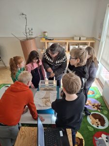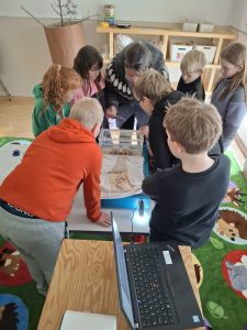 Í vetur hefur verið mikið samstarf á milli leikskólans Andabæjar og Grunnskóla Borgarfjarðar Hvanneyrardeildar. Nemendur leikskólans hafa komið í kennslustundir í skólanum, og nemendur grunnskólans farið út í leikskóla. Núna fengu nemendur grunnskólans boð frá leikskólanum að koma og skoða maurabú sem þeir höfðu fengið að láni frá Marco sem hefur starfað við að rannsaka maura á Íslandi. Nemendur fóru í þremur hópum út í leikskóla og fengu þar kynning á maurabúinu hjá Sigurbjörgu Þórunni og gátu skoðað maurana með smásjá. Þetta vakti mikinn áhuga hjá nemendum og voru þau með fjöldann allan af spurningum sem Sigurbjörg svaraði eftir bestu getu. Einna helst þótti þeim merkilegt að það væru bara kvenkyns maurar í búinu þar sem þær væru svo duglegar að vinna á meðan karlarnir vildu bara borða og fljúga svo burt.