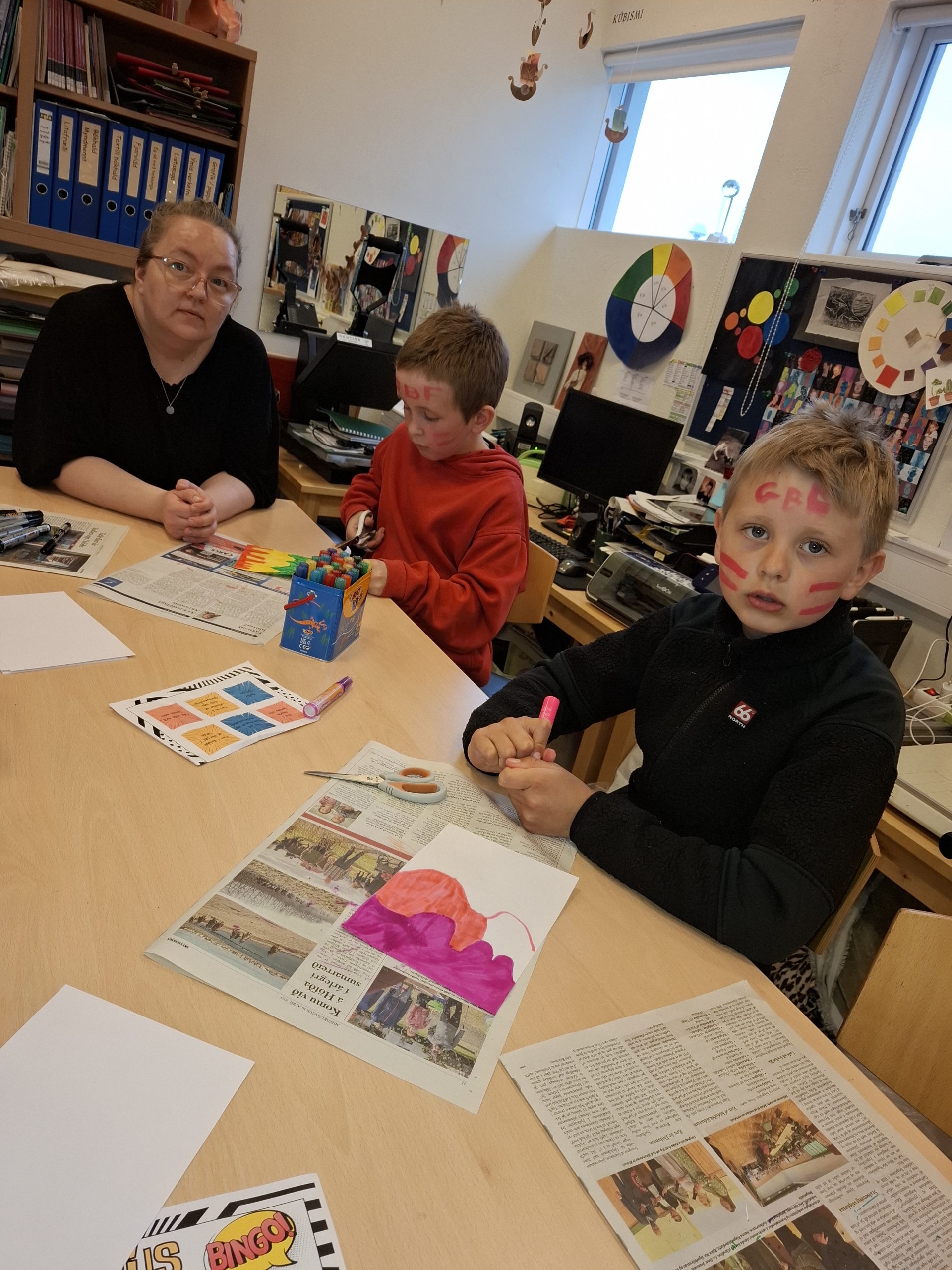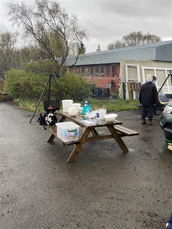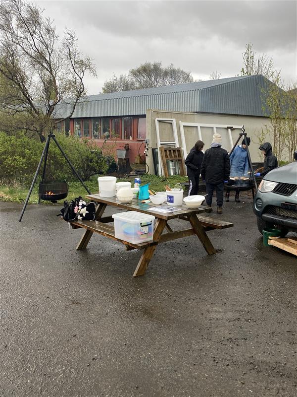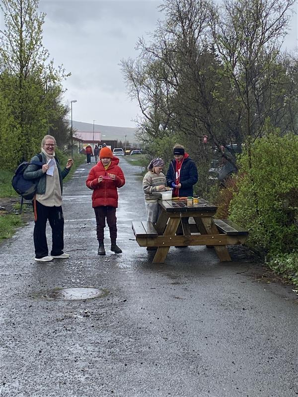 Nemendur yngri bekkjanna stóðu sig með stakri prýði við móttöku aðstandenda og leiddu þá um skólann og útikennslusvæðið. Í boði var að gera listaverk í myndmenntinni, spila og leysa ýmsar þrautir, hlusta á hljóðfæraleik, baka klatta úti og skoða byggingu sem nemendur eru að vinna að úti á Læknistúni.