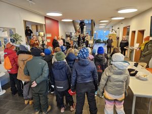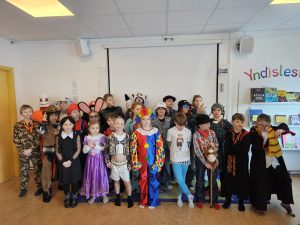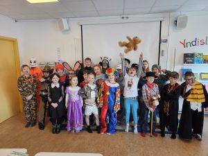 Öskudagur var haldinn hátíðlegur á Hvanneyri í dag. Ýmsar kynjaverur og karakterar komu í skólann í morgun. Eftir morgunmat fóru svo allir nemendur í heimsókn í Rannsókn, Hvannarhúsið og í Landbúnaðarháskólann og sungu fyrir starfsfólkið þar og fengu að launum nammi. Nemendur höfðu sjálf valið lögin Róa með Væb og Lagið um það sem er bannað. Eftir sönginn fórum við öll í íþróttahúsið í leiki og fengum svo að horfa og borða nammi eftir hádegismat.