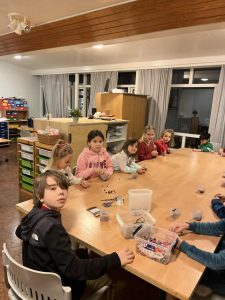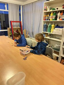 Nýverið heimsótti skólahópur úr leikskóla grunnskólann og tók þátt í sköpunartíma með grunnskólanemendum. Heimsóknin er liður í að kynnast starfi grunnskólans og fá innsýn í skóladaginn sem bíður barnanna í framtíðinni. Nemendur unnu saman að því að búa til falleg vinaarmbönd og litríkar mósaíkmyndir. Mikil gleði og sköpunargleði ríkti í tímanum og greinilegt var að bæði leikskólabörn og grunnskólanemendur nutu stundarinnar. Heimsóknin heppnaðist einstaklega vel og var öllum til mikillar ánægju.