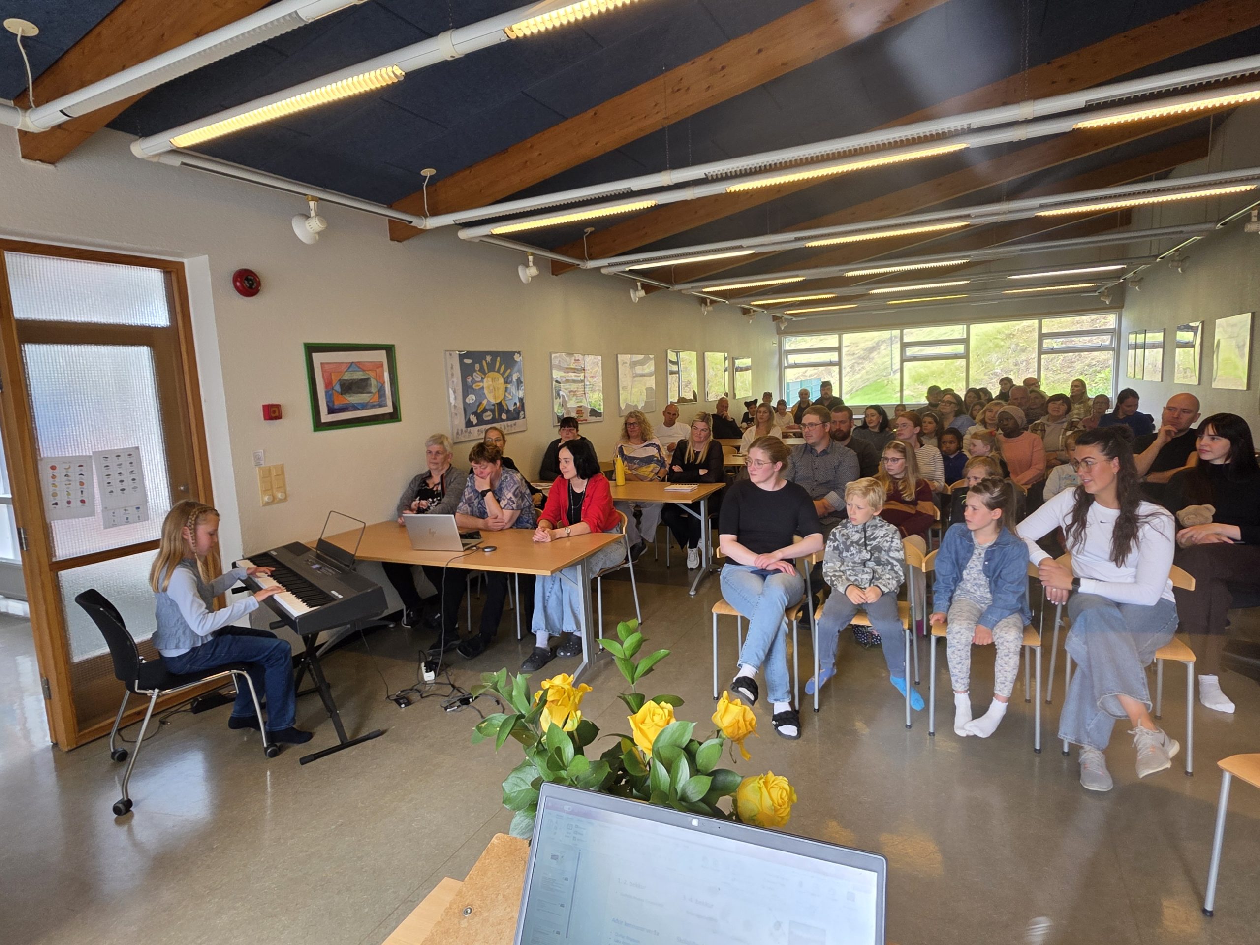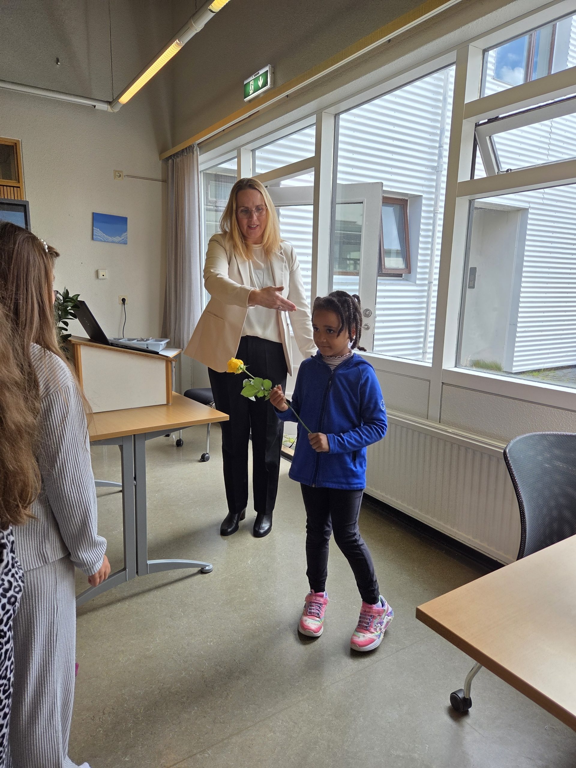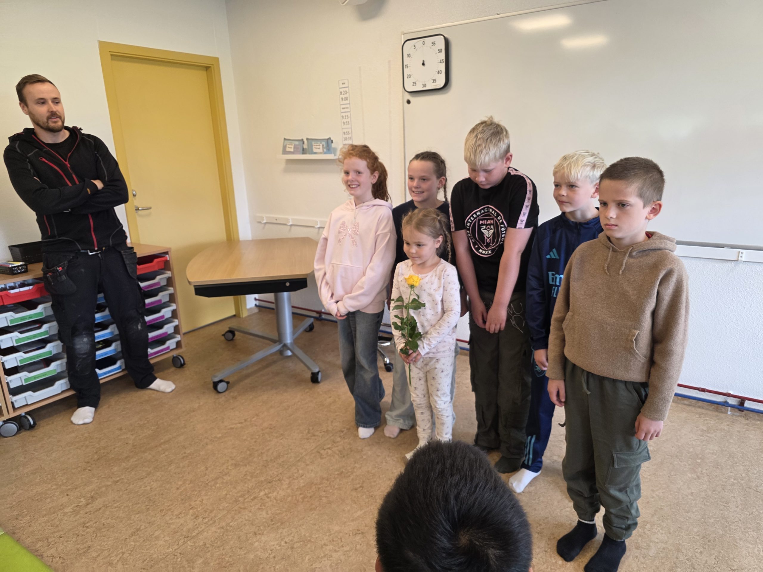Á Varmalandi var hist í matsalnum og flutti Solveig, nemandi í 3. bekk, tónlistaratriði. Þá komu nemendur í fjórða bekk og afhendu nemanda í 1. bekk rós. Síðan tóku umsjónarkennarar við og fóru yfir mikilvæg mál í tengslum við skólaárið.