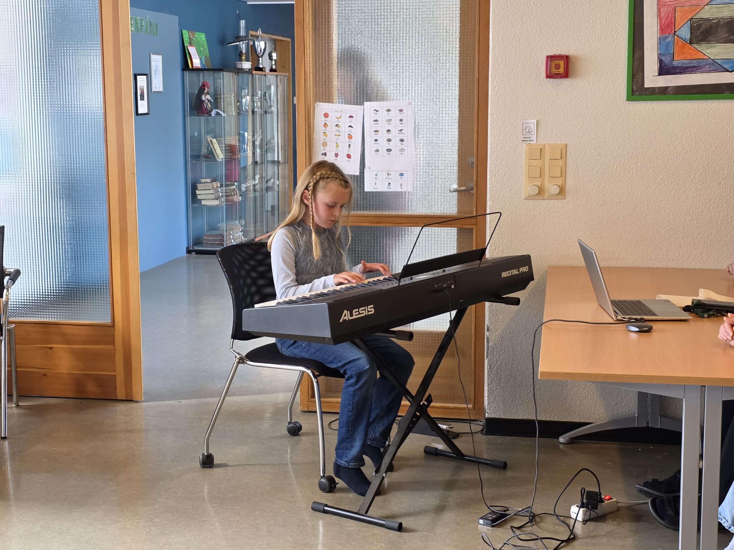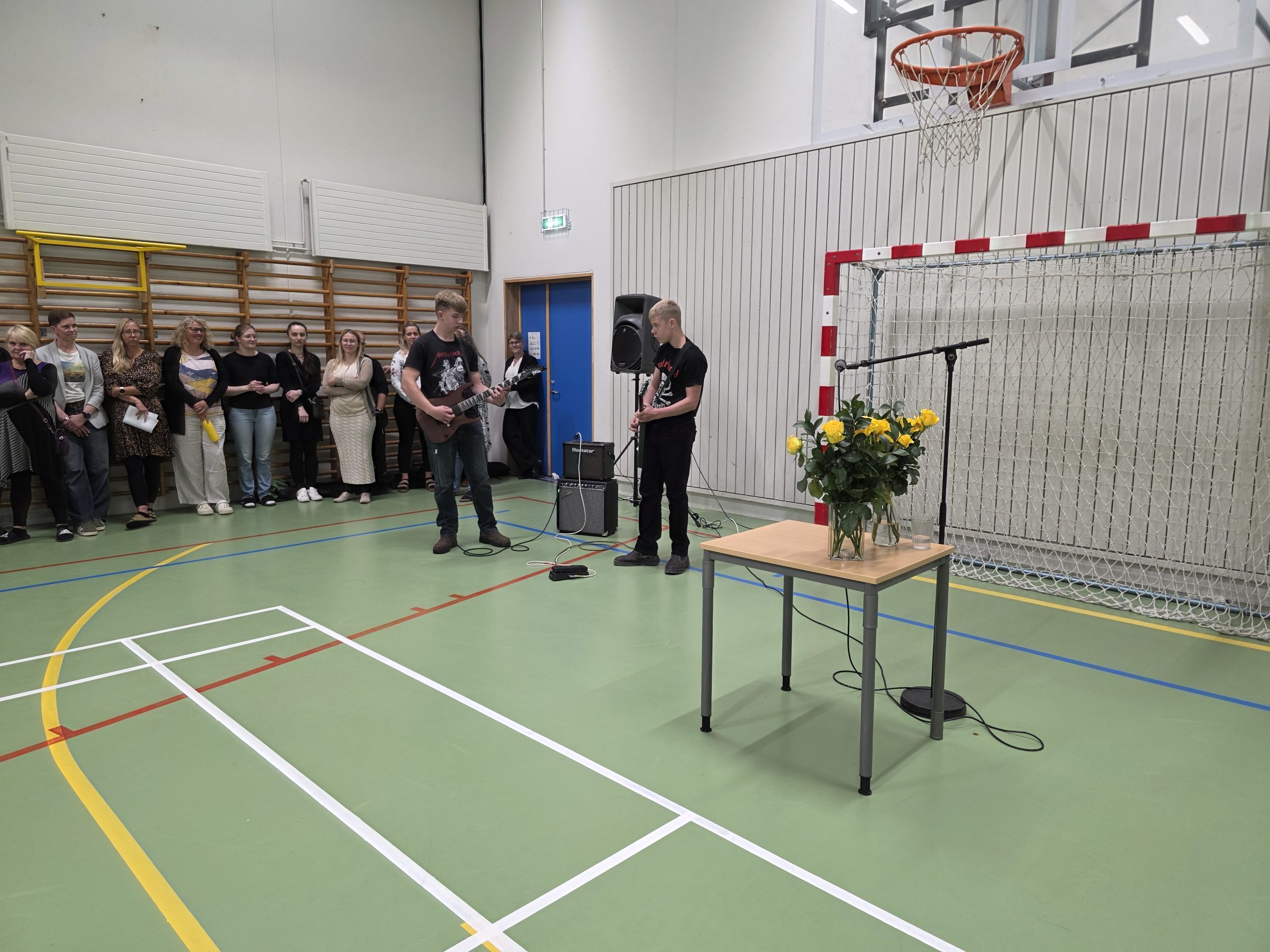 Á Kleppjárnsreykjum fór athöfnin fram í íþróttahúsinu og fluttu Haukur og Sigvaldi nemendur úr 10.bekk tónlistaratriði. 6. bekkur afhenti fyrsta bekkjar nemendum rósir. Að því loknu fóru allir og hittu umsjónarkennara sína.