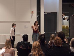 Samkoman var vel sótt og hafði nemendaráðið skreytt salinn smekklega og sá að auki um sölu á veitingum í hléinu.