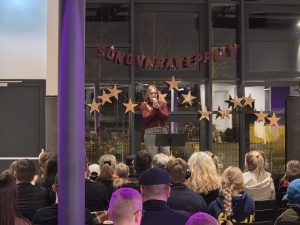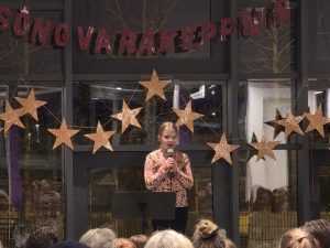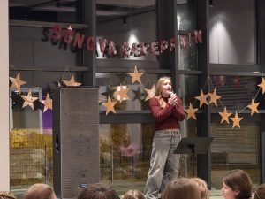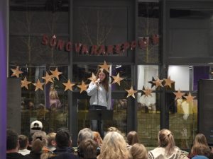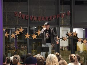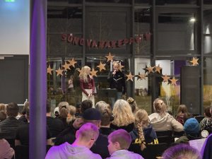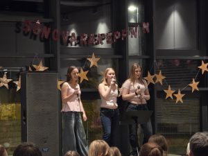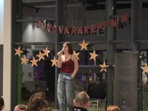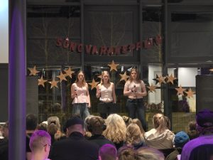 Samkoman var vel sótt og hafði nemendaráðið skreytt salinn smekklega og sá að auki um sölu á veitingum í hléinu.