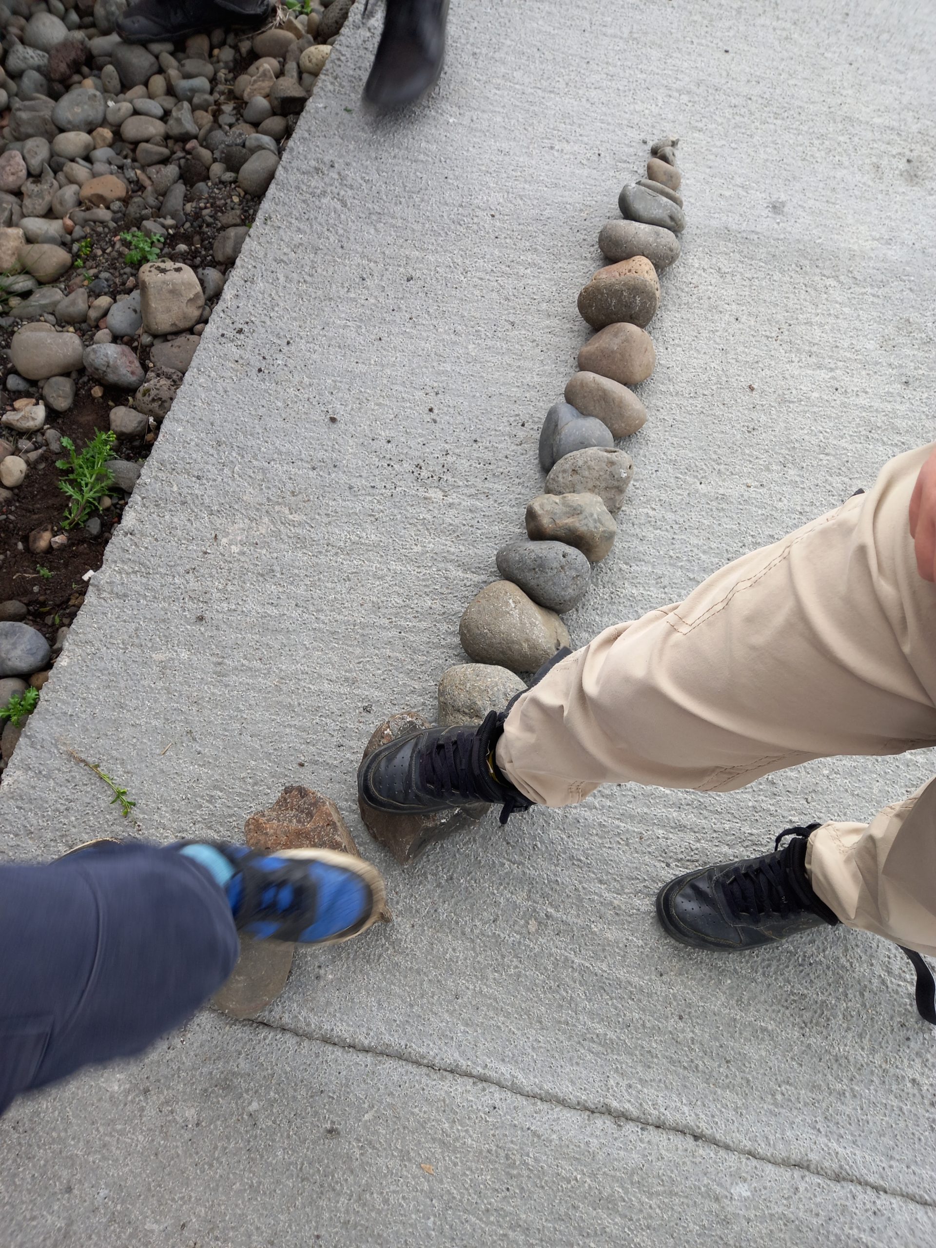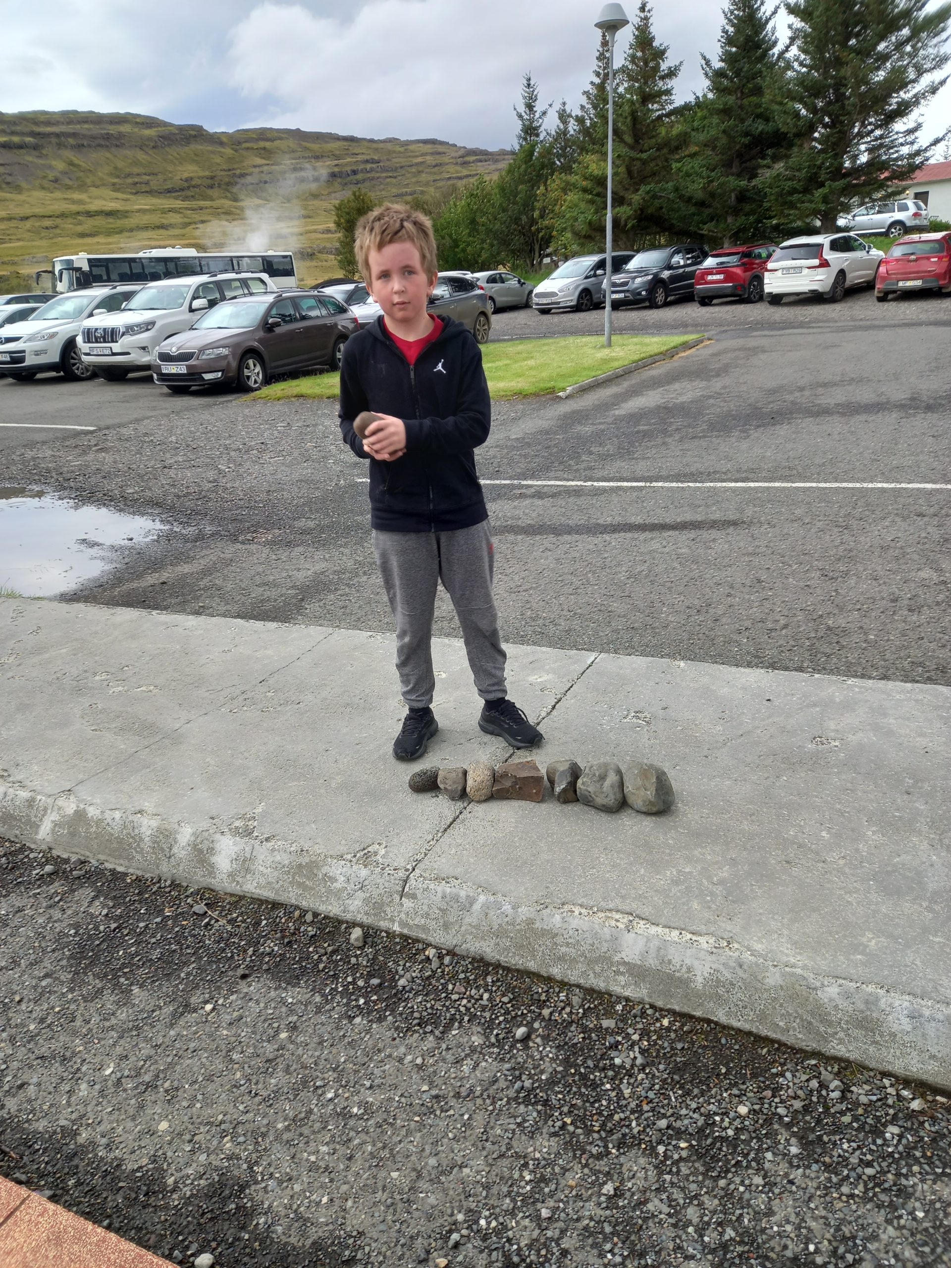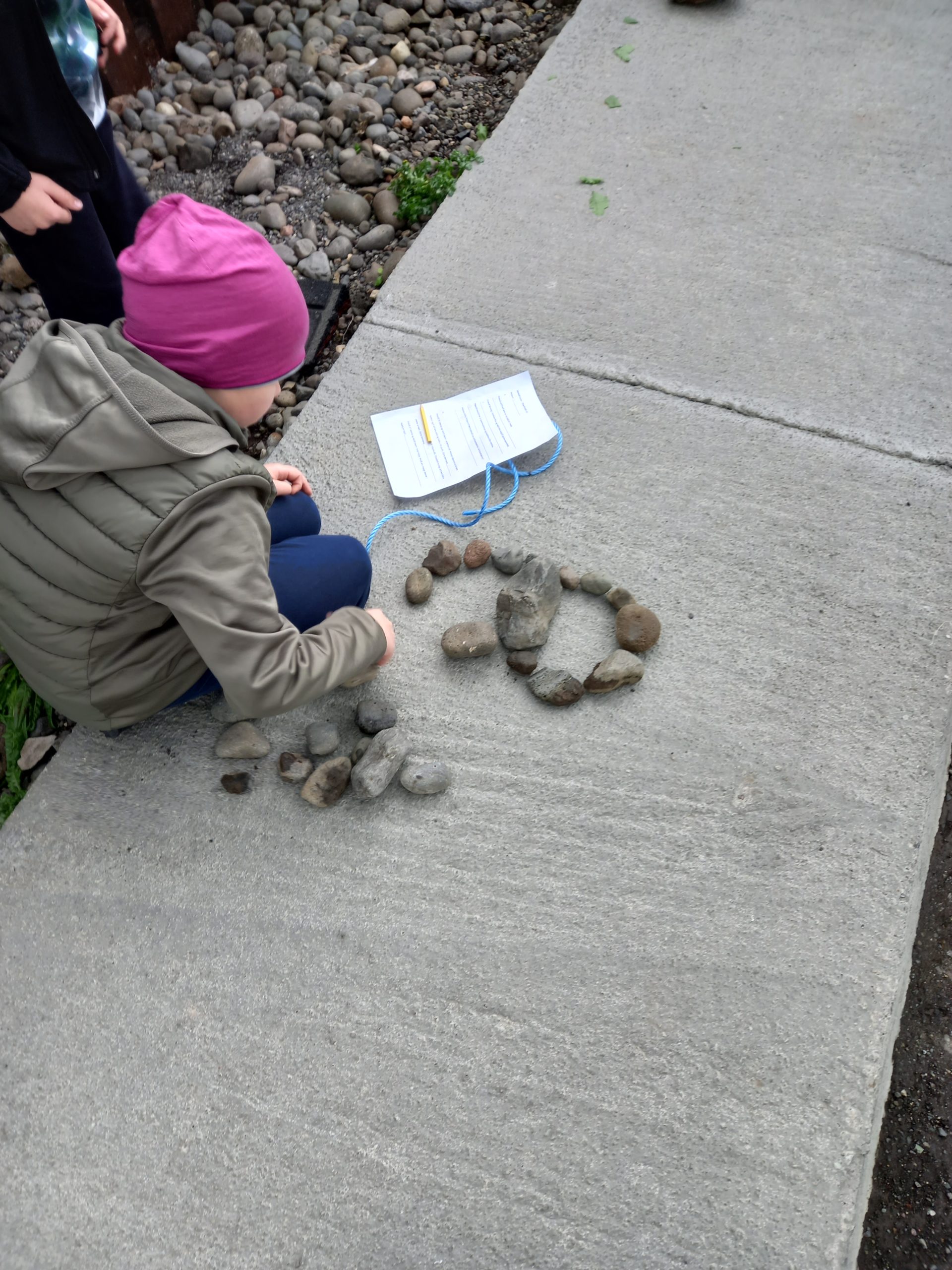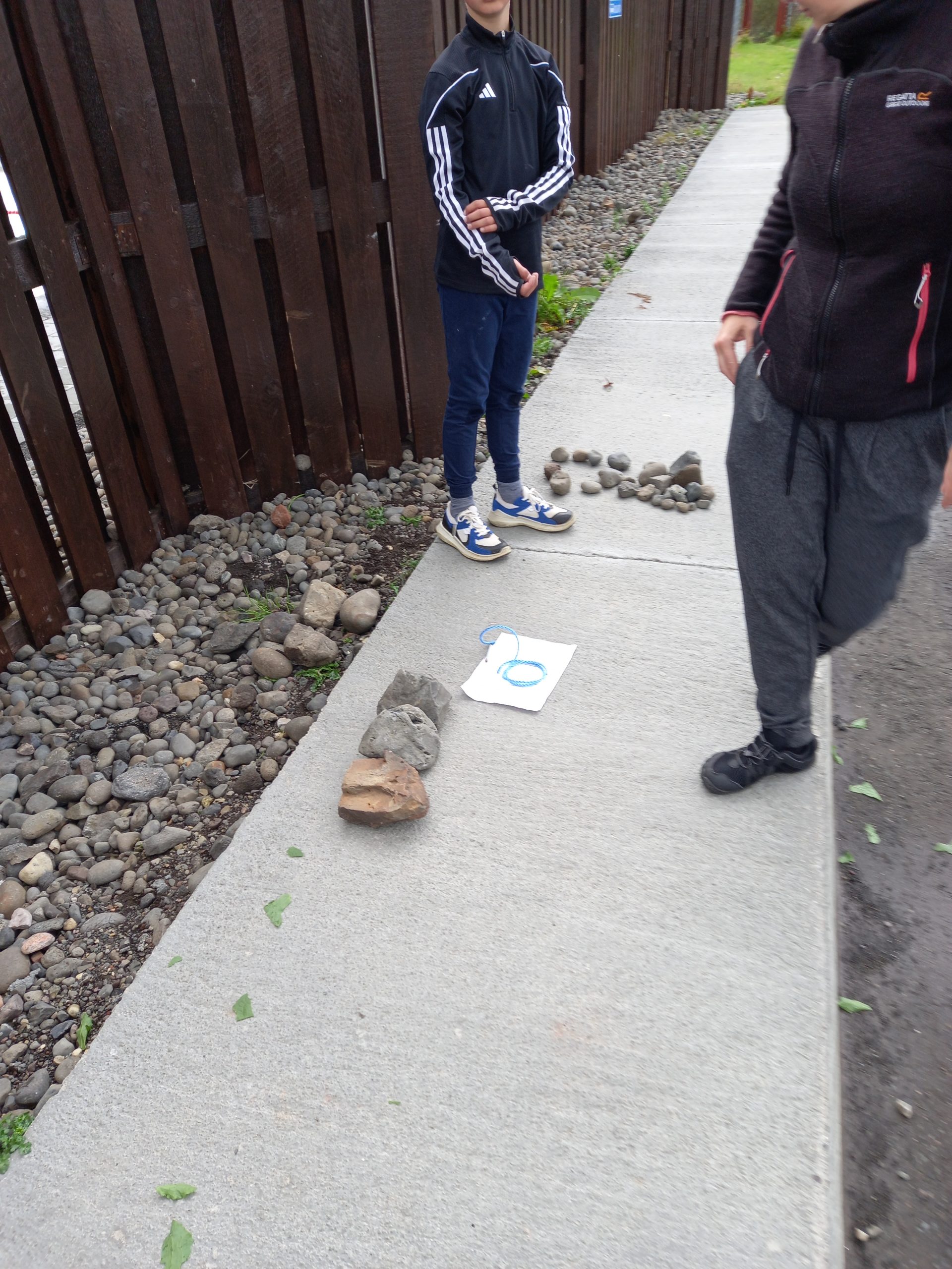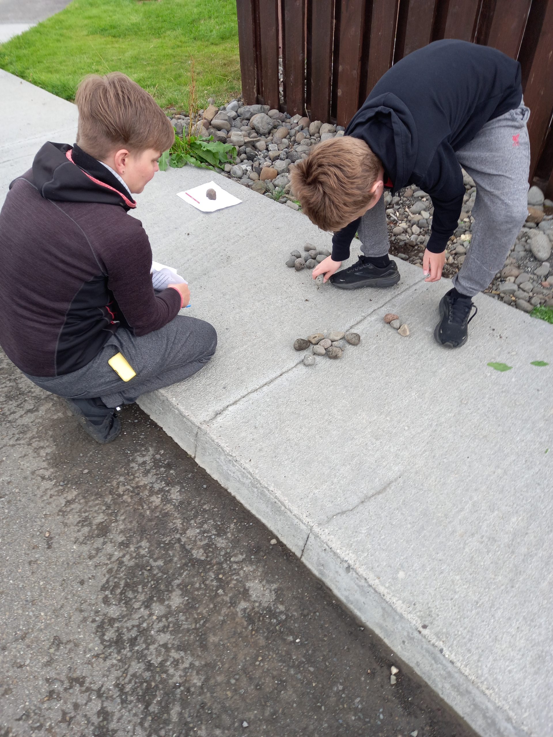 Í fyrstu vikunni fór 3. og 4. bekkur út fyrir skólastofuna til að njóta veðurblíðunnar og prufa sig áfram í öðrum aðferðum við námið. Hópnum var skipt upp í þrjár einingar, sem reyndi á samvinnu í verkaskiptingu og skapaði einnig passlegan keppnisanda milli hópa. Verkefnið fól í sér lengdarmælingar, finna form og mismunandi horn ásamt verkefnum með steinum. Nemendur fengu með sér kaðalspotta sem var notaður við ýmsar mælingar á skólalóðinni ásamt því að telja hænuskref á milli staða. Það reyndi pínu á nemendur að átta sig á að formin sem við erum oft að vinna með í stærðfræðinni eru allt í kring um okkur. Þau þurftu t.d. að finna átthyrning, og átti það að vera snúnasta formið að finna, en einn hópurinn áttaði sig fljótlega á að fótboltapannan er átthyrnd. Síðasti hluti verkefnisins var svo að telja steina, raða þeim í stærðarraðir og deila þeim í jafnar hrúgur. Krakkarnir voru áhugasamir og leystu verkefnið með ánægju og prýði.