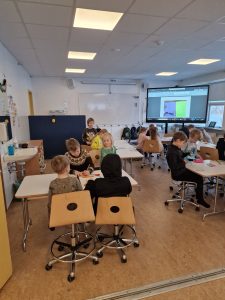 Svona heimsóknir styrkja tengsl og samvinnu milli skólanna tveggja og er að auki liður í aðlögun skólahóps í grunnskólann. Alltaf líf og fjör hjá okkur.