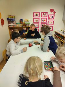 Í tilefni af Valentínusardeginum voru hittu nemendur Gbf á Hvanneyri vinahópa sína í Andabæ. Nemendur 4. og 5. bekkjar heimsóttu yngstu krakkana í Andabæ og tveir elstu árgangar í Andabæ komu í heimsókn í skólann. Öll undu þau sér vel í leik og starfi.