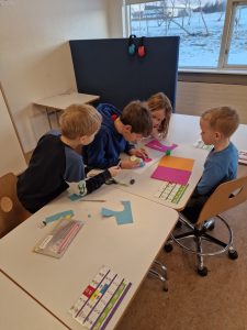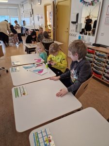 Svona heimsóknir styrkja tengsl og samvinnu milli skólanna tveggja og er að auki liður í aðlögun skólahóps í grunnskólann. Alltaf líf og fjör hjá okkur.