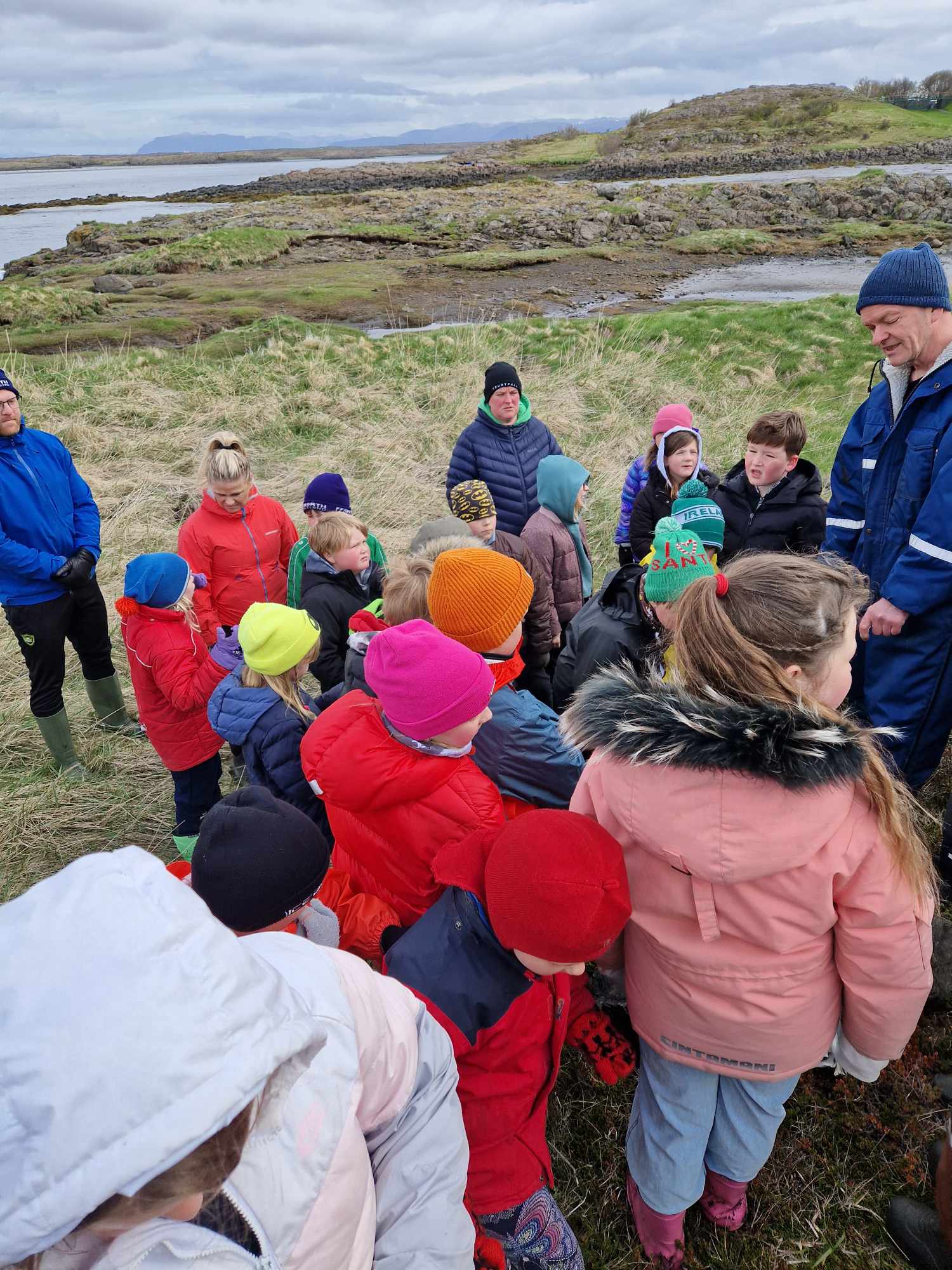 Nemendur 3. bekkjar ásamt kennurum gengu út í Litlu Brákarey í fylgd Finnboga Rögnvaldssonar. Þar fengu krakkarnir að upplifa fuglalífið og skoða æðarvarpið.