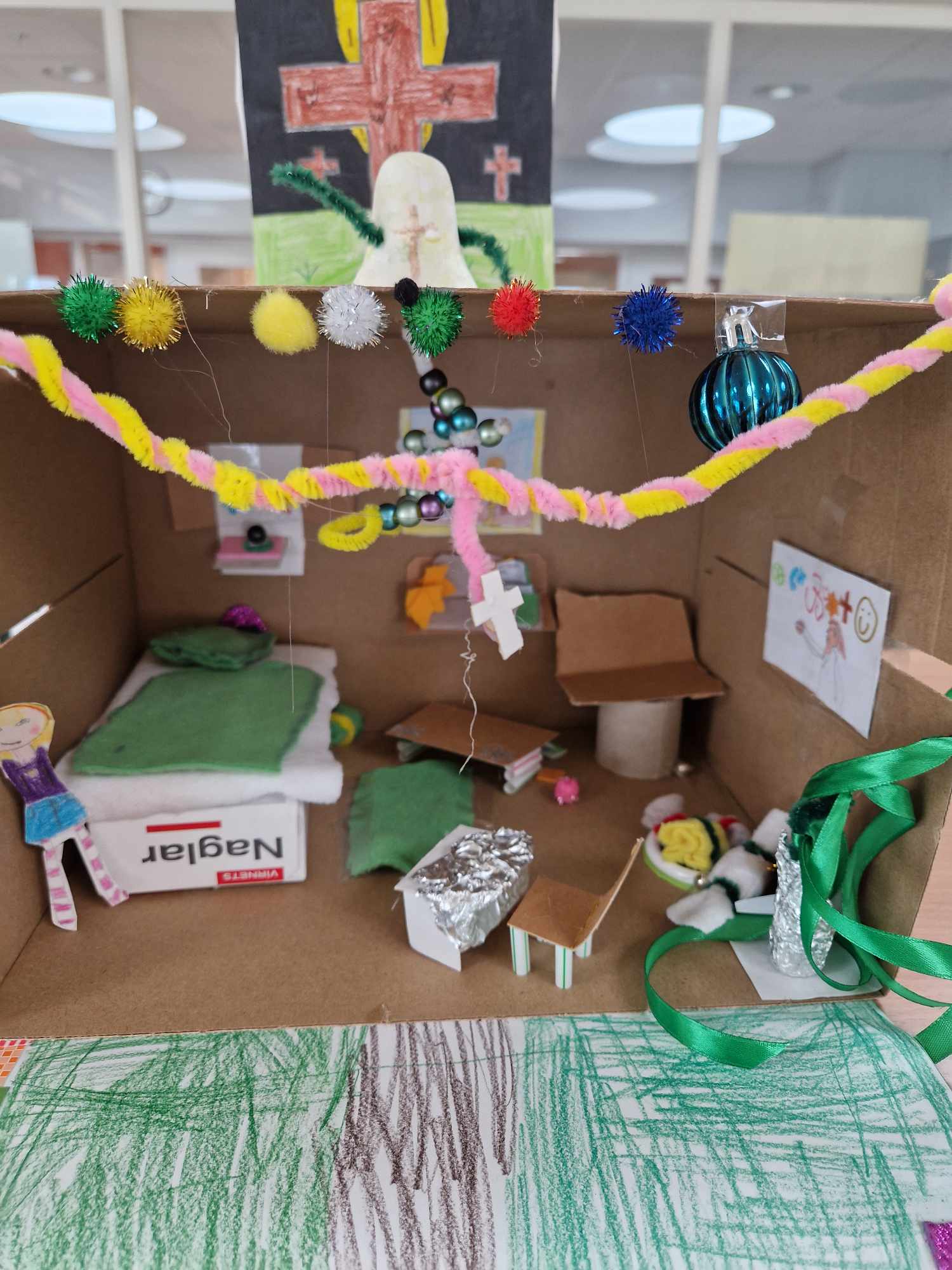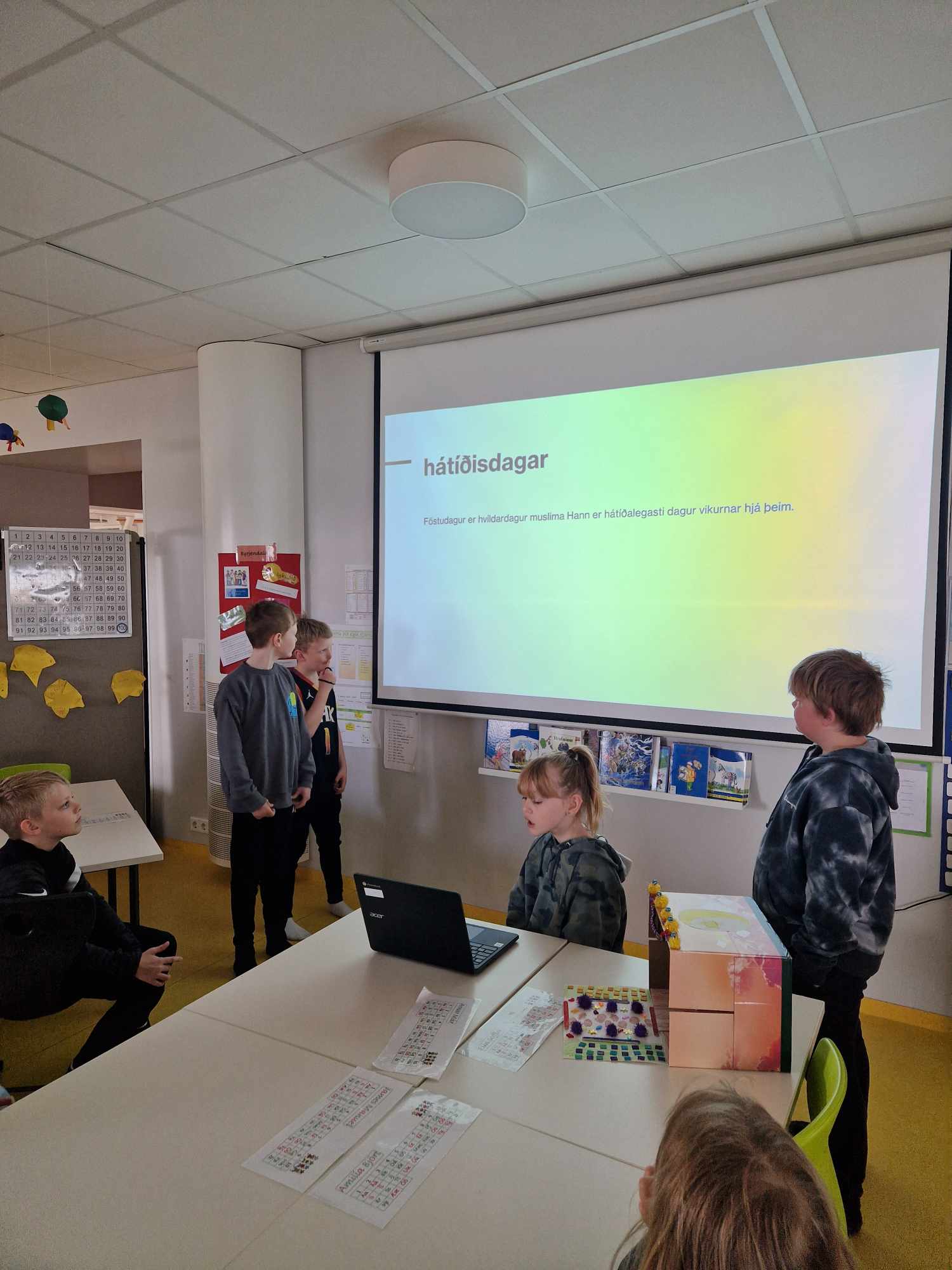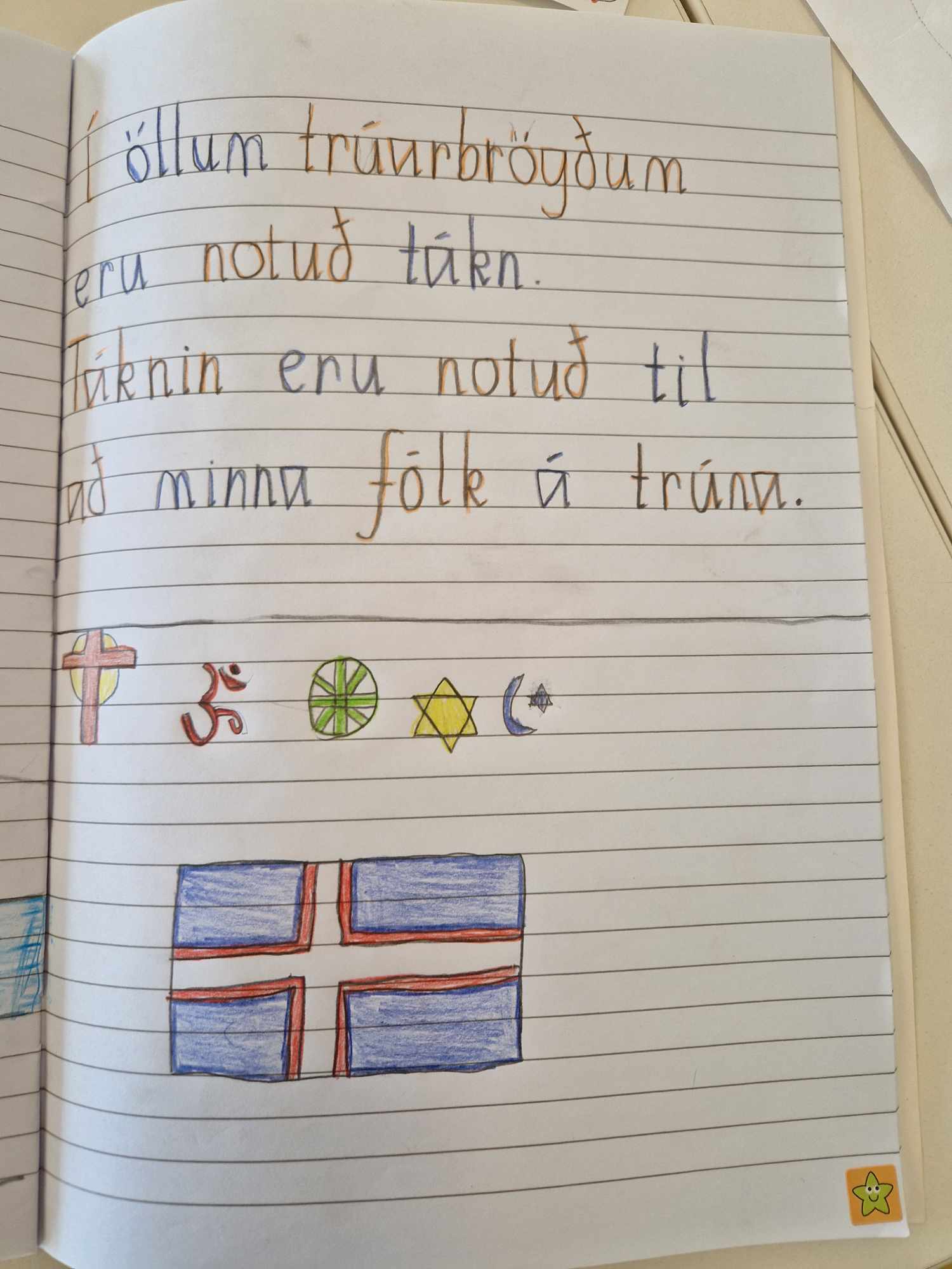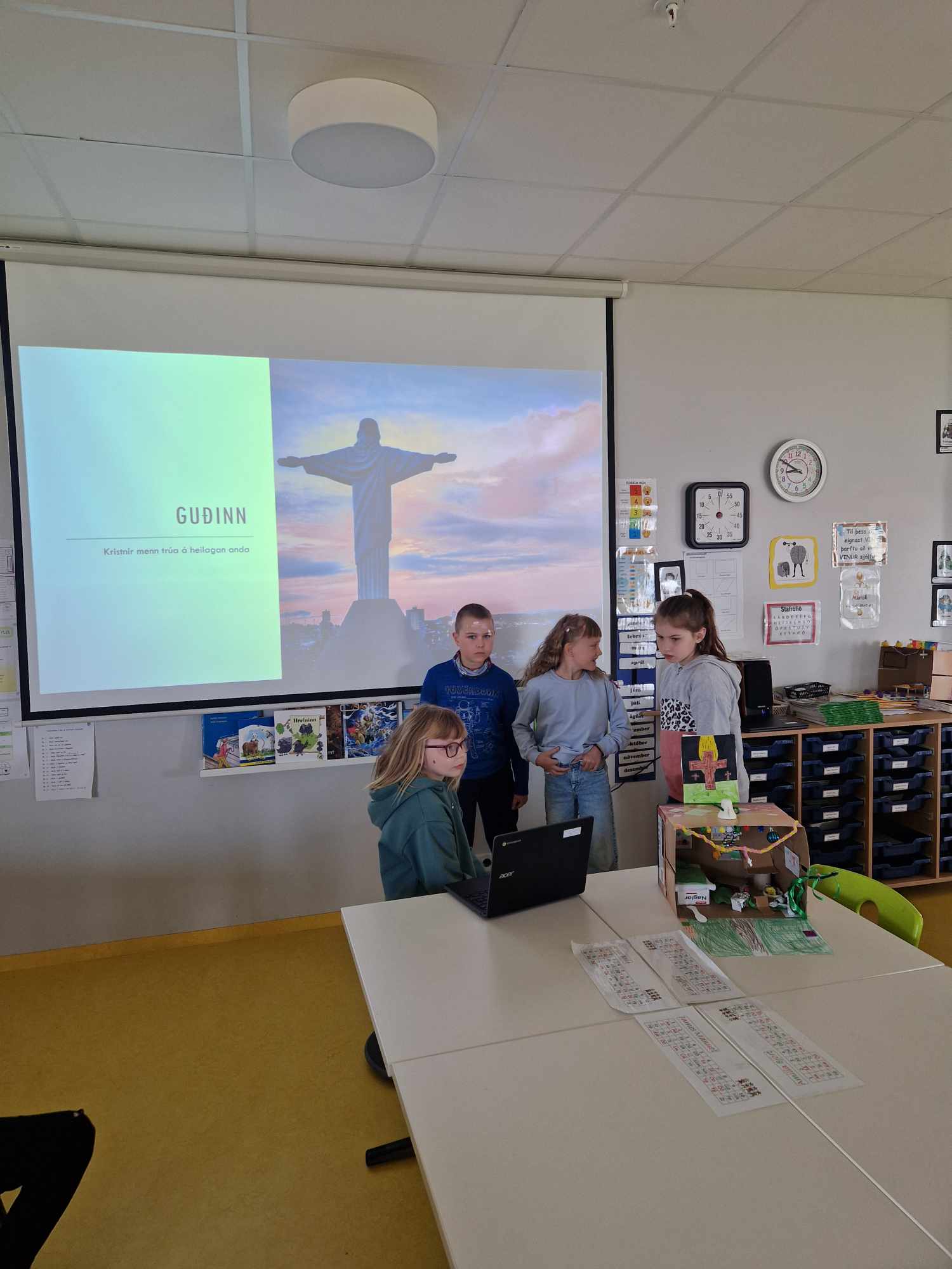 Föstudaginn 17. maí var 3. bekkur með “opna skólastofu” þar sem nemendur og starfsfólk gátu komið við og skoðað og fengið fræðslu um helstu trúarbrögð heimsins. Krakkarnir sýndu húsin sín, glærukynningar og fleiri verkefni sem þau höfðu unnið í hópum, hver hópur með sitt trúarbragð.