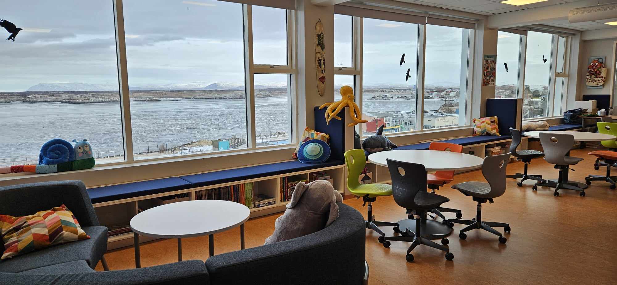 Myndir sem fylgja þessari frétt eru frá bókasafninu okkar þar sem nemendur eiga sér smá athvarf til að stíga út úr skarkalanum sem stundum er á göngum skólans.