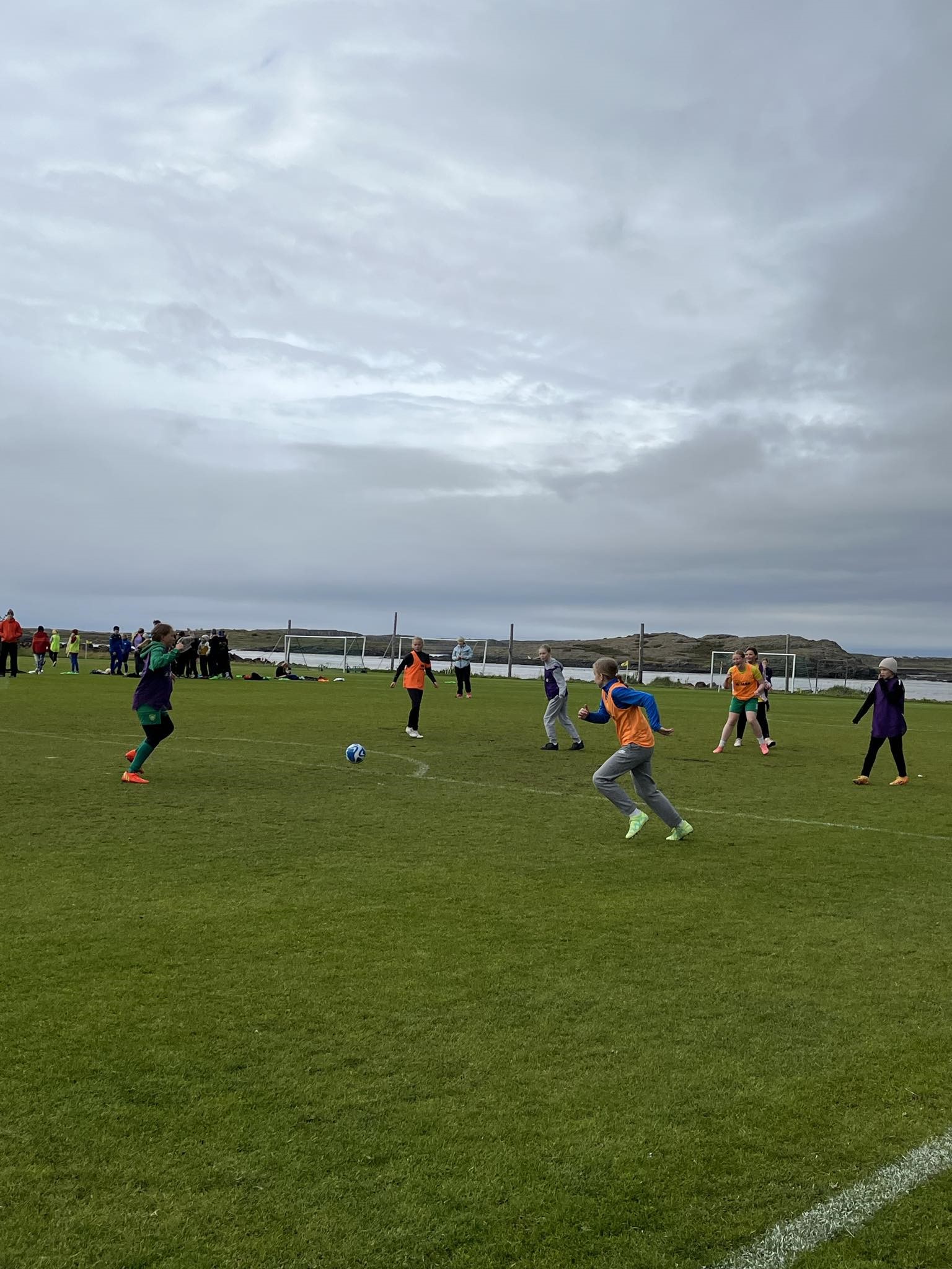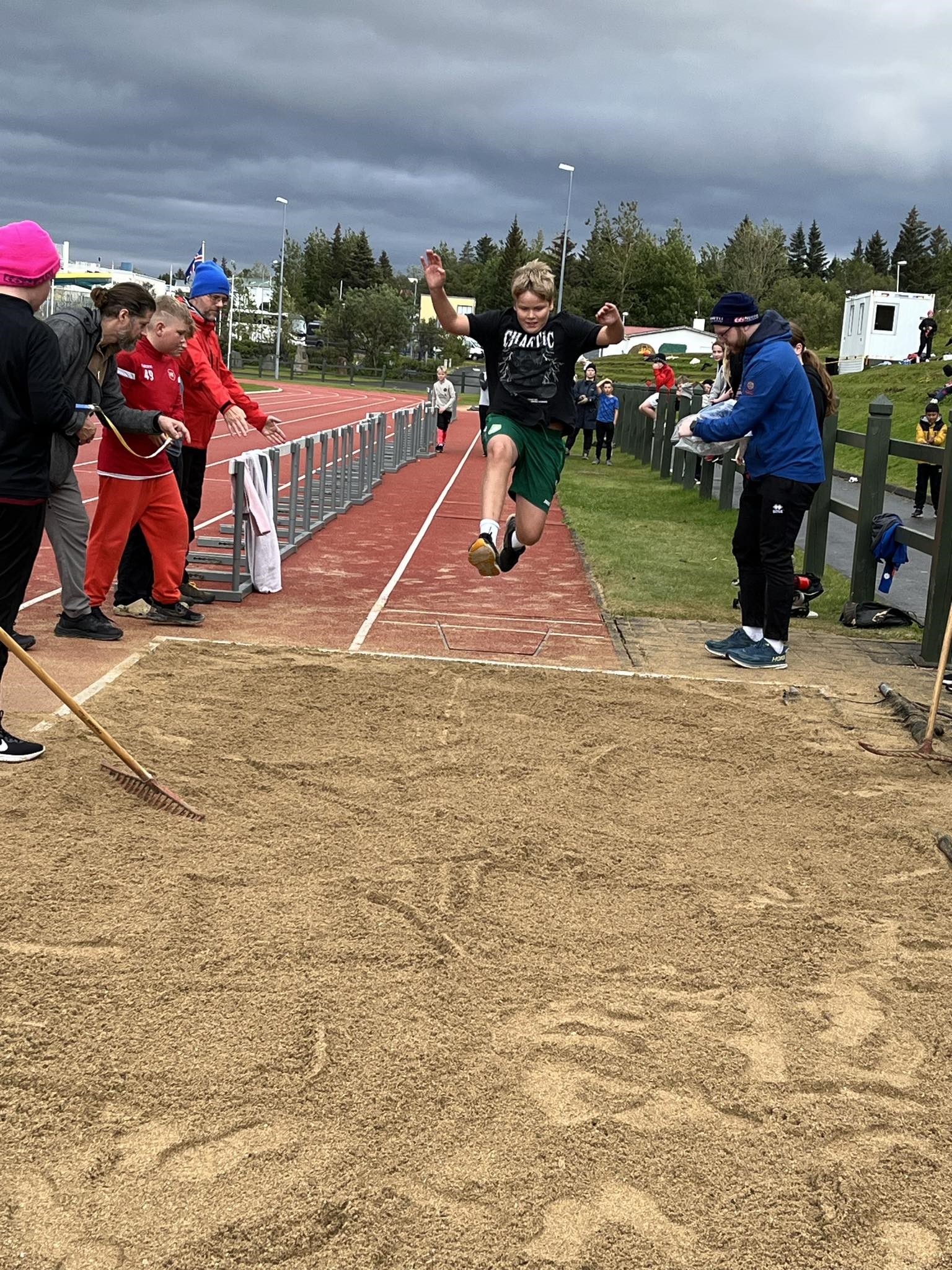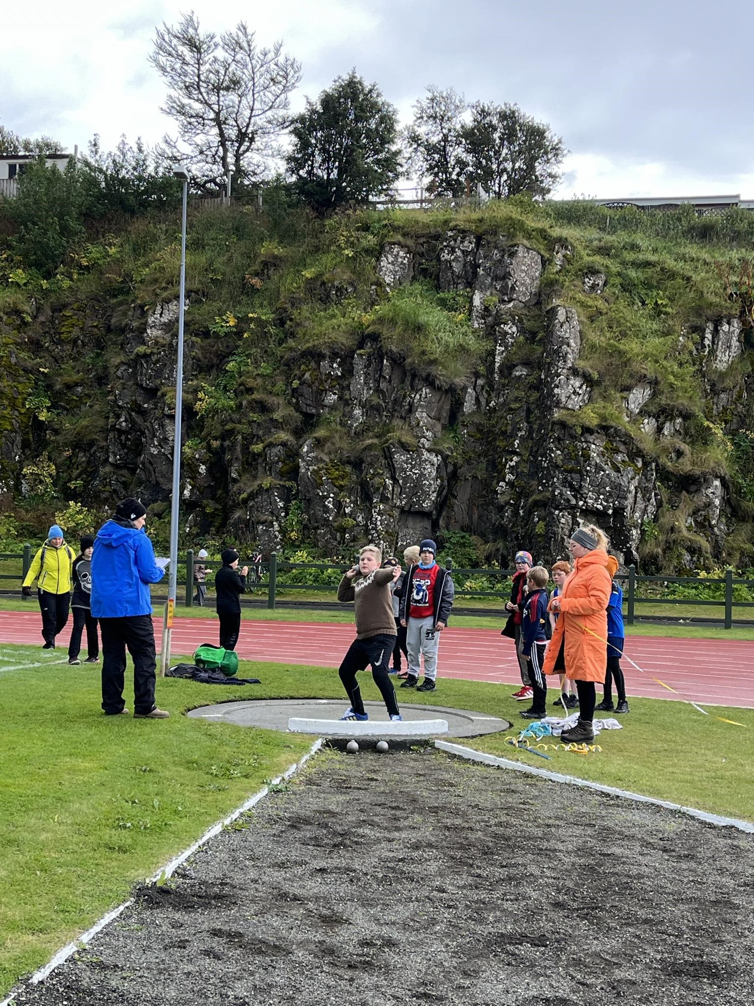 Hinir árlegu miðstigsleikar, sameiginlegt verkefni samstarfsskólanna Grunnskólans í Borgarnesi, Grunnskóla Borgarfjarðar, Heiðarskóla, Reykhólaskóla og Auðarskóla voru haldnir í gær, Þátttakendur voru nemendur í 5. – 7.bekk. Keppnin fór fram hér í Borgarnesi og keppt var í fjórum greinum; langstökki, kúluvarpi, 60 metra hlaupi og fótbolta. Allt fór vel fram og þátttakendur virtust skemmta sér vel.