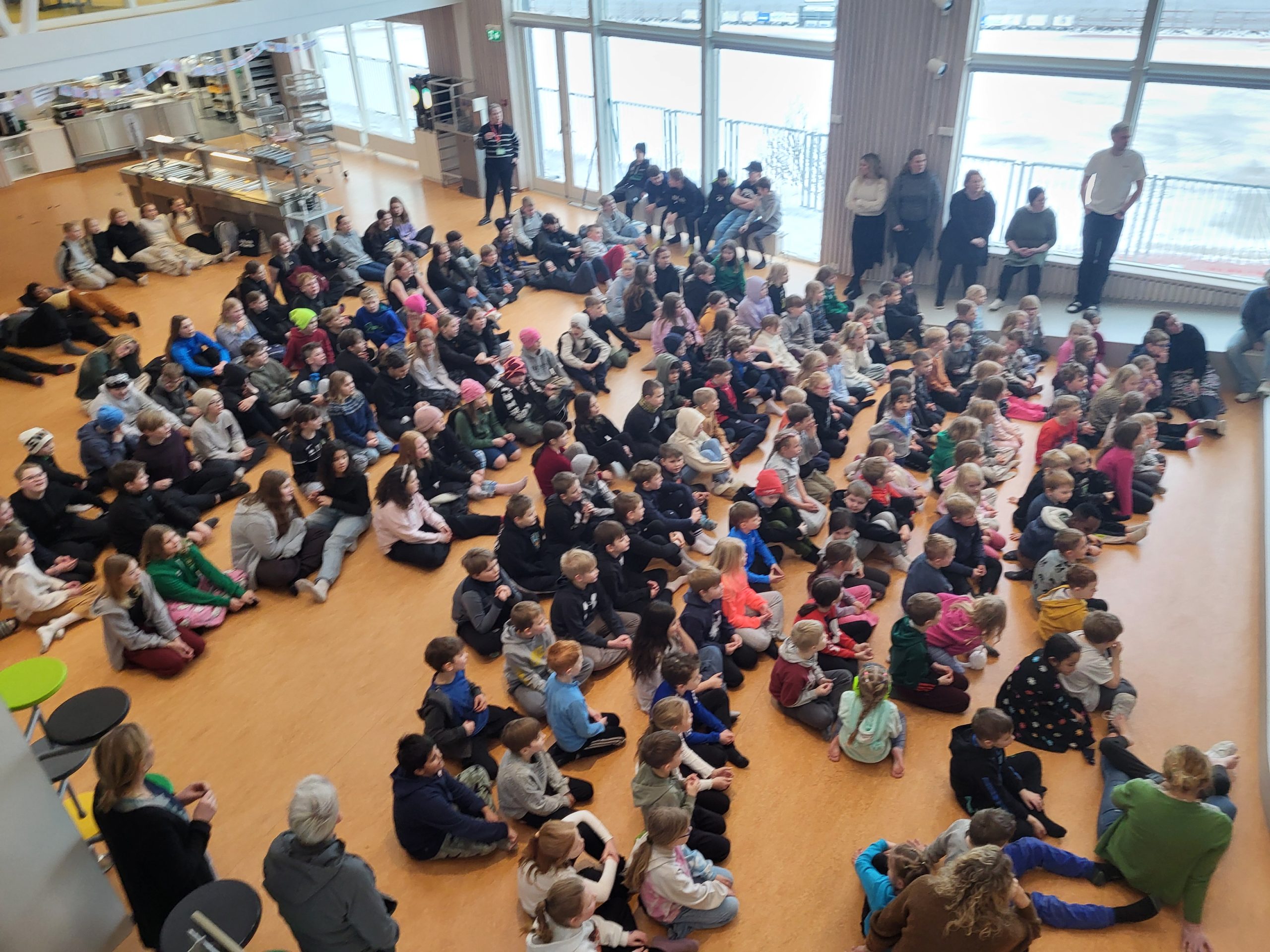 Föstudaginn 31.jan komu Óli Flosason og Árni Freyr til okkar á vegum Listaskóla Borgarfjarðar. Þeir komu og spiluðu á gítar og píanó meðan að 1. b – 7. b sungu lögin Á sprengisandi, Kvæðið um fuglana, Lagið um það sem er bannað og Ég er kominn heim.