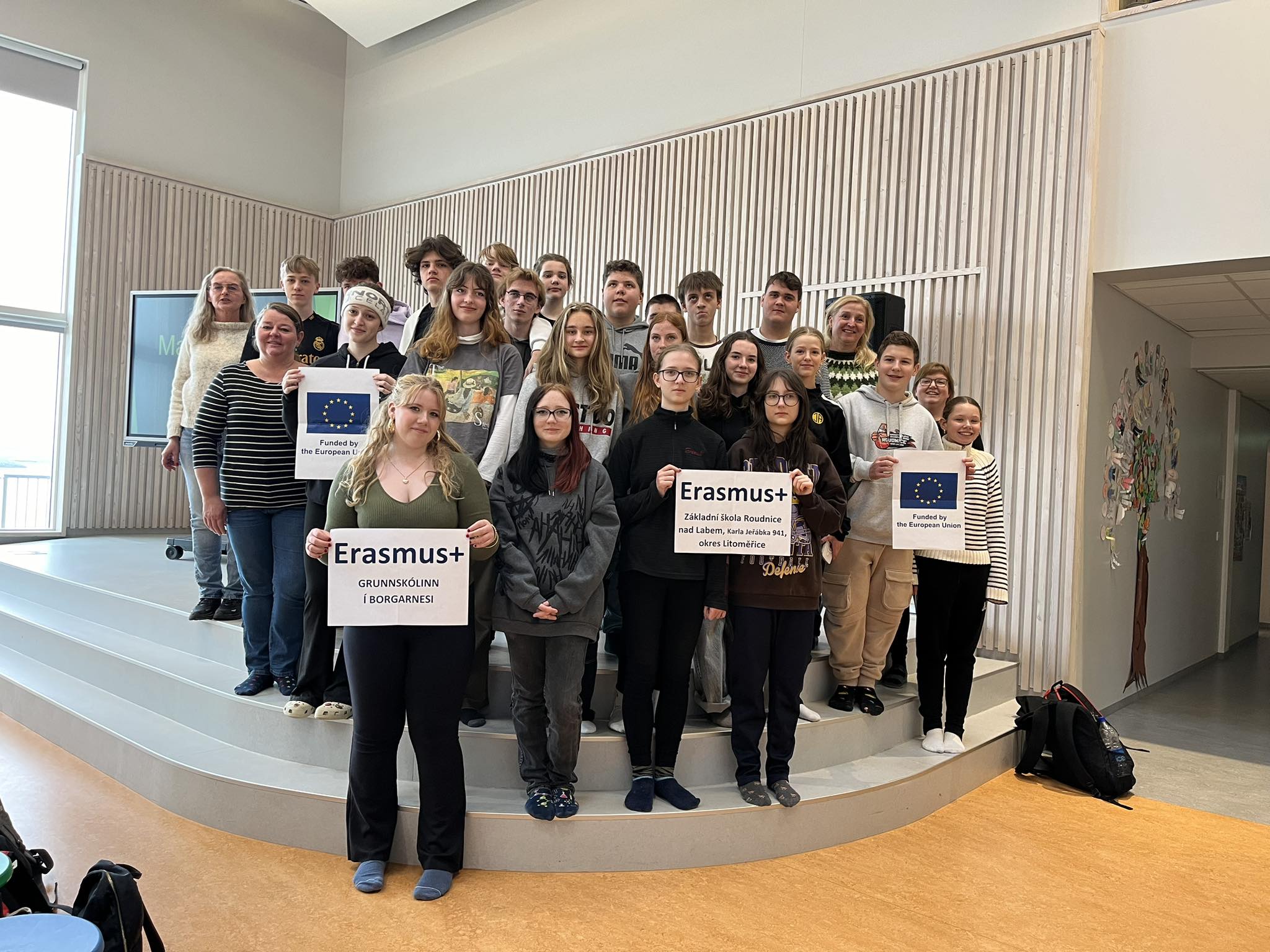 Samstarfsskólinn okkar er Základní Skola Karla Jerábka, í bænum Roudnice nad Labem í Tékklandi. Vikuna 22. – 26.apríl sl. voru fimmtán nemendur þaðan í heimsókn hér í skólanum, ásamt aðstoðarskólastjóra og tveimur kennurum. Nemendur í 8. og 9.bekk, sem hafa í vetur verið í valgreininni „Erlent samstarf“ voru gestgjafar þeirra hér, ásamt náttúrufræðikennara og verkefnisstjóra.
