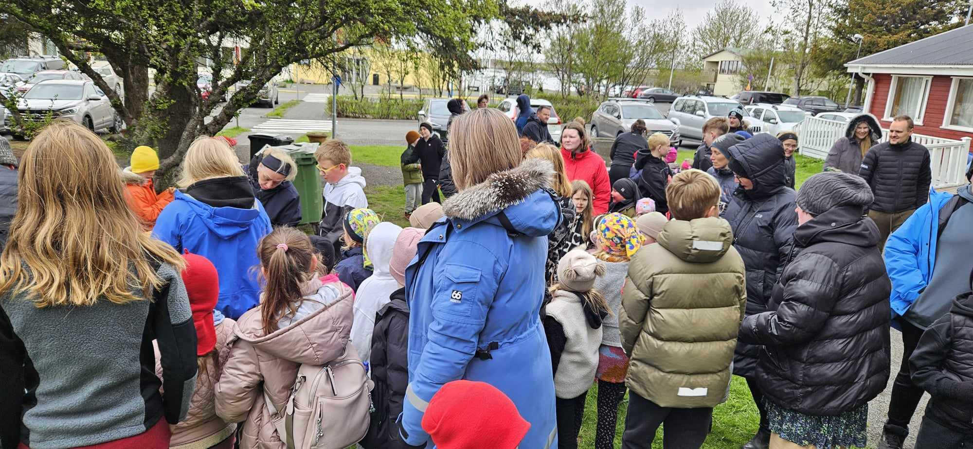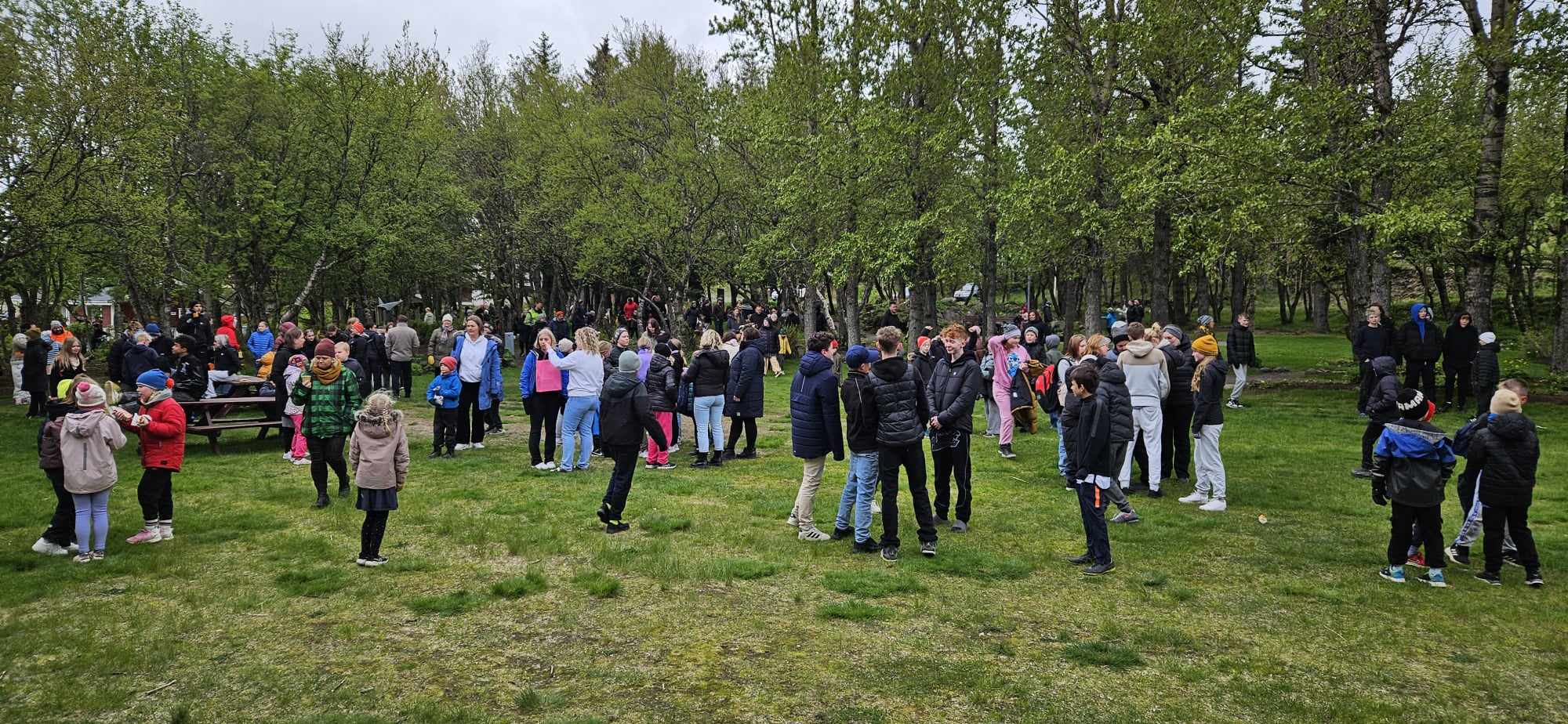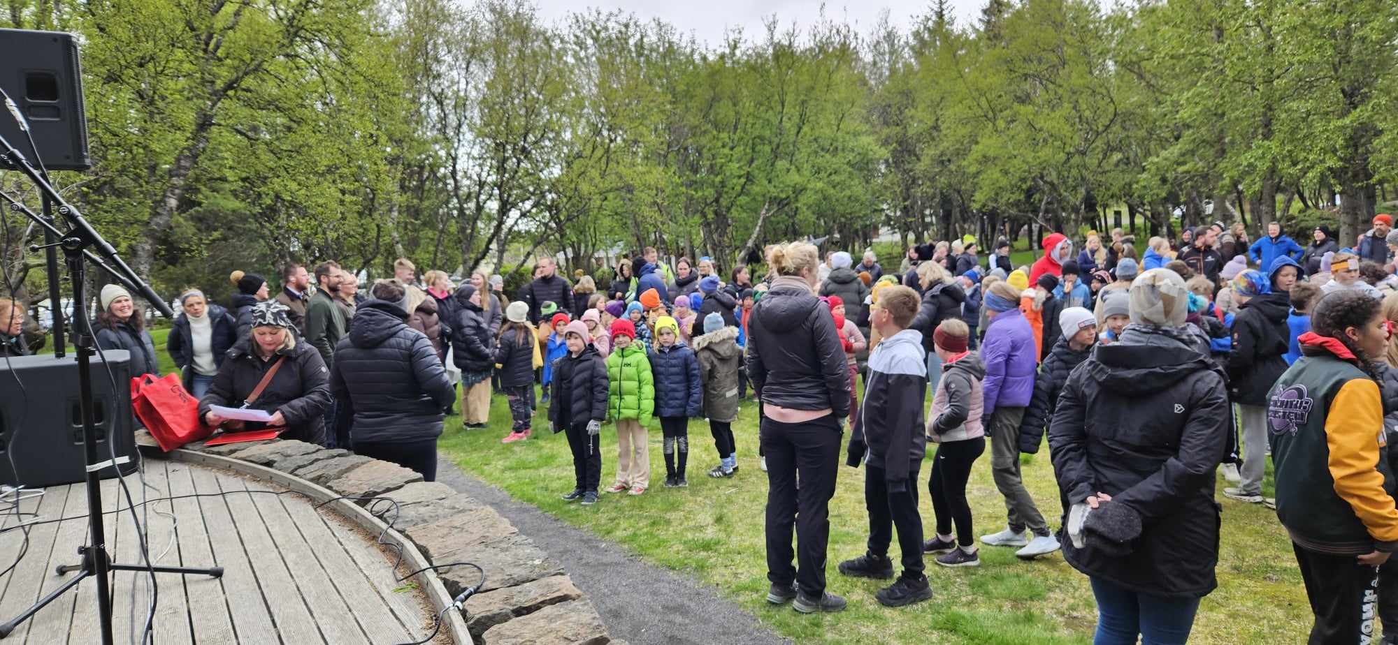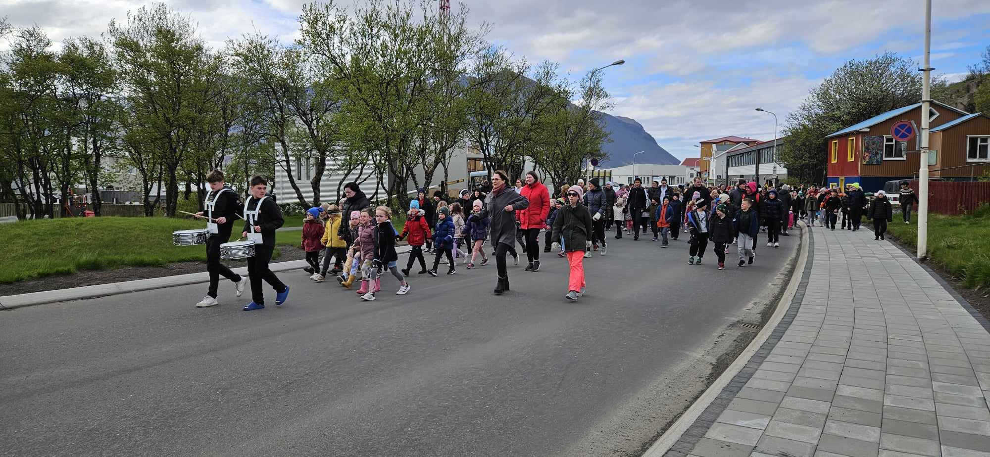 Í dag fóru fram skólaslit hjá 1. – 9. bekk og var hátíðin haldin í Skallagrímsgarði. Krakkarnir marseruðu frá skólanum niður í Skallagrímsgarð undir góðum trommutakti og fóru svo í ratleik og fengu pylsur áður en dagskráin hófst. Dagskráin bauð svo upp á tónlistaratriði og samsöng áður en kynnt var ný stjórn nemendafélagsins og fram fór afhending einkunna.