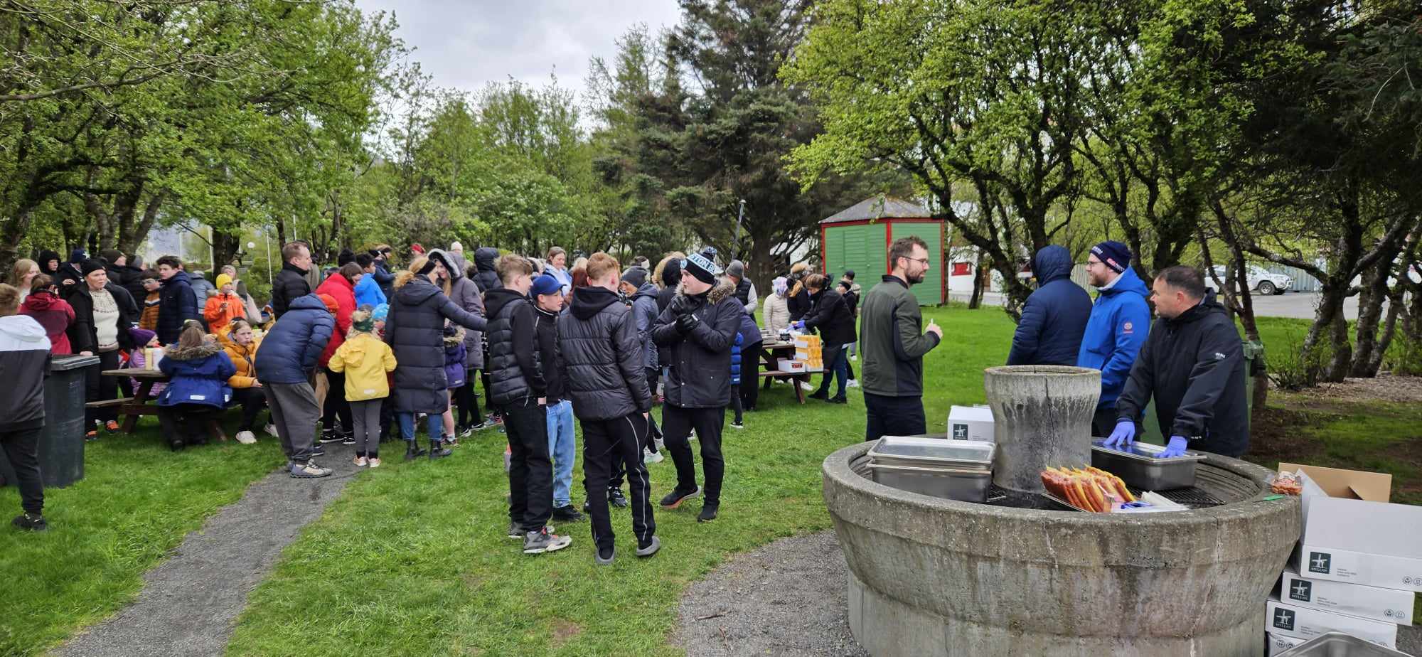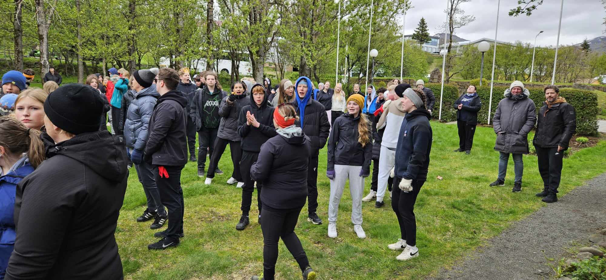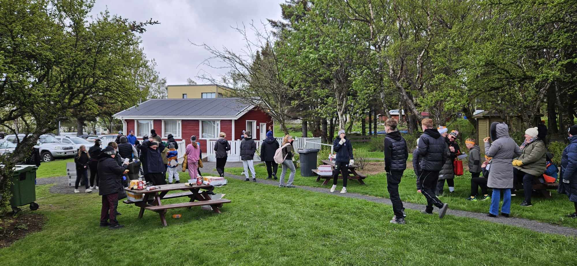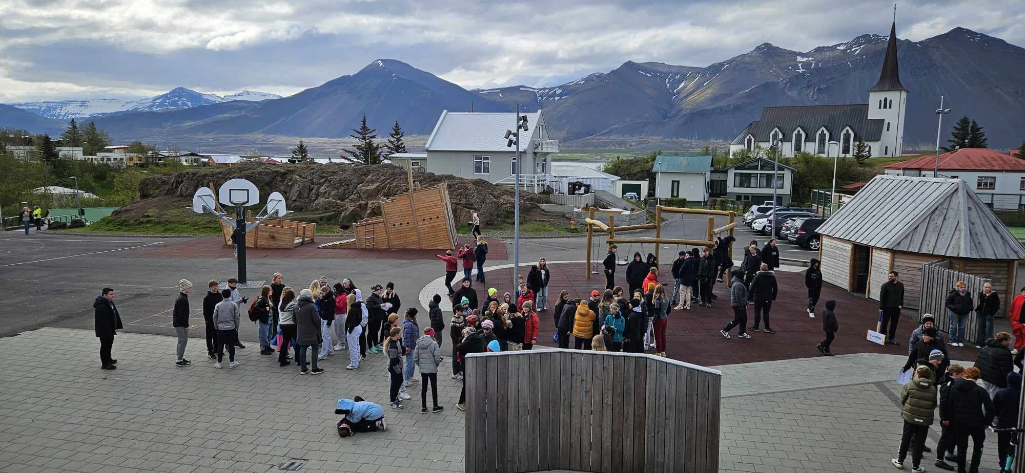 Í dag fóru fram skólaslit hjá 1. – 9. bekk og var hátíðin haldin í Skallagrímsgarði. Krakkarnir marseruðu frá skólanum niður í Skallagrímsgarð undir góðum trommutakti og fóru svo í ratleik og fengu pylsur áður en dagskráin hófst. Dagskráin bauð svo upp á tónlistaratriði og samsöng áður en kynnt var ný stjórn nemendafélagsins og fram fór afhending einkunna.