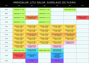 Meðfylgjandi eru stundatöflur fyrir opna tíma og æfingar í íþróttamiðstöðinni haustið 2025.